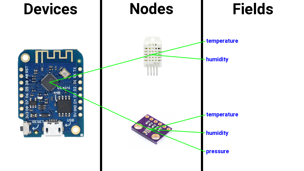 So, here is the list of your devices... for example, a device corresponds to an IoT hardware – like ESP8266 or Raspberry Pi – and every device may have several nodes. Check out our detailed tutorials to help you integrate your devices with our services!